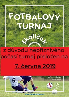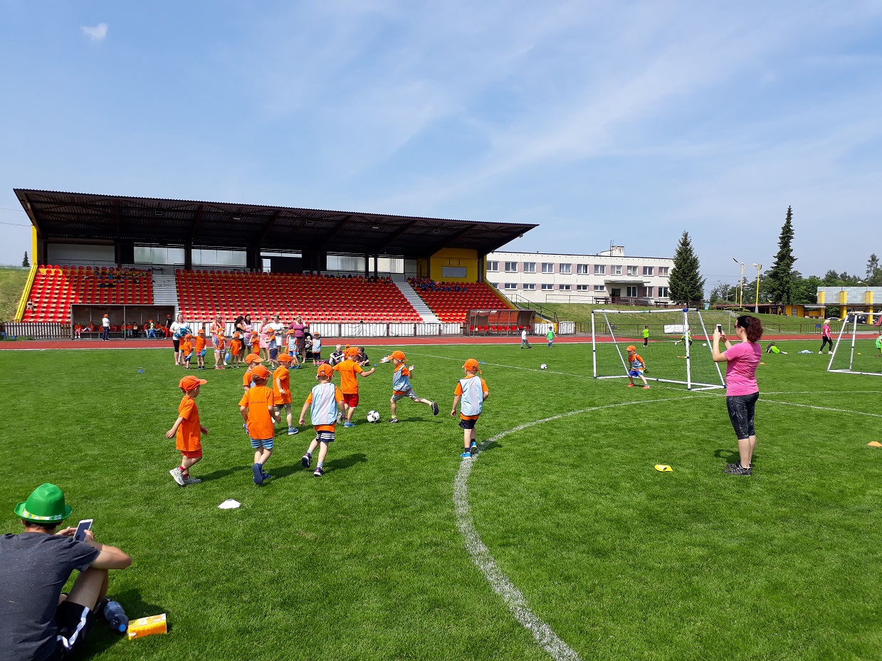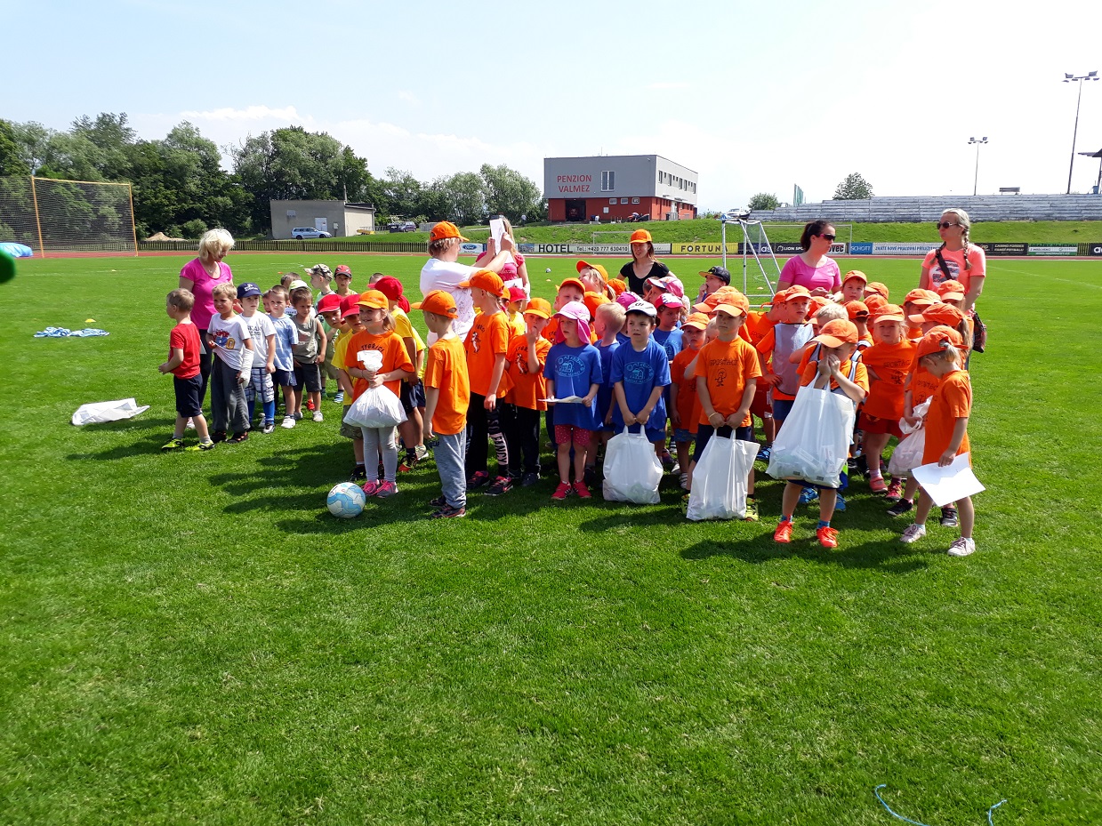 Ve čtvrtek 24. 5. jsme na našem stadionu uspořádali fotbalový turnaj mateřských škol z Valmezu a blízkého okolí. Za krásného počasí se na hřišti prohánělo 70 dětí. Turnaje se zúčastnilo 5 školek, které vytvořily 7 týmů, z toho jeden zcela dívčí. Naše pozvání přijali MŠ Seifertova, MŠ Vyhlídka, MŠ Křižná, MŠ Hrachovec a MŠ Štěpánov. Výsledky nehrály roli, šlo o radost z pohybu a fotbalu. Všechny týmy obdrželi diplom za 1.místo a tašku plnou sladkostí.