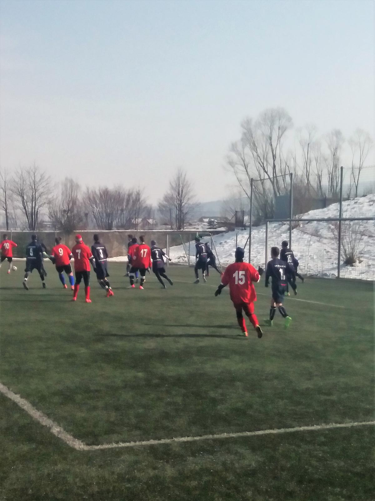 Mrazivá, ale slunečná sobota nabídla na valašskomeziříčské umělé trávě měření sil dvou dorostů. Domácí U17 a hostů z nedalekých Kateřinic. Původním soupeřem domácích měl být celek ze Slovenského Krásna nad Kysucou, který hraje třetí nejvyšší Slovenskou soutěž, ale ten skolila chřipková epidemie, takže patří velký dík narychlo domluvenému soupeři z Kateřinic. Hosté od začátku ukázali, že budou velmi houževnatým a odhodlaným soupeřem. Držení míče sice mírně vyznívalo pro domácí, ale první branka utkání byla v režii hostí. Po faulu byl před šestnáctkou domácích nařízen přímý volný kop a ten ukázkově zužitkoval hráč Kateřinic. Hegar neměl moc šancí tento míč chytit. V hostujícím celku bylo několik velice šikovných fotbalistů, kteří už zažili svůj debut v 1. A třídě v mužské kategorii. Proto bylo i v průběhu hry znát, že tato zkušenost je bude zvýhodňovat především v soubojích jeden na jednoho, kde byli opravdu velmi kvalitní. Vyrovnání přišlo o deset minut později z kopačky domácího kapitána Pobořila, který se dostal k odraženému míči na hranici pokutového území. Prvním dotekem zpracoval a druhým, aniž by se míč dotkl země, přesně zacílil na vzdálenější tyč hostující branky. Další změnu skóre zařídili opět hosté. Nekompromisně potrestali chybu domácí zálohy před hranicí šestnáctky a v zakončení se nemýlili. Na vyrovnání se čekalo dalších dvanáct minut. Domácí stoper Handl se vydal z obrany na výlet na polovinu soupeře a vybídl svojí přihrávkou Kristýna. Ten srovnal stav utkání a zanedlouho poslal ValMez dokonce do vedení. Této brance předcházel samostatný únik Vrabce od poloviny hřiště, který však v koncovce neměl chladnou hlavu a nesmyslně mířil doprostřed hostující brány, kde našel jen připraveného brankáře. V poslední minutě prvního poločasu zařídil Kristýn navýšení o dvě branky, když po úniku na levé straně našel svou přihrávkou Melichaříka.