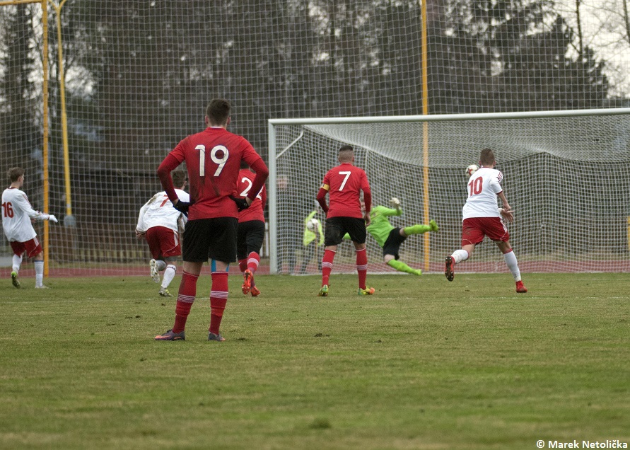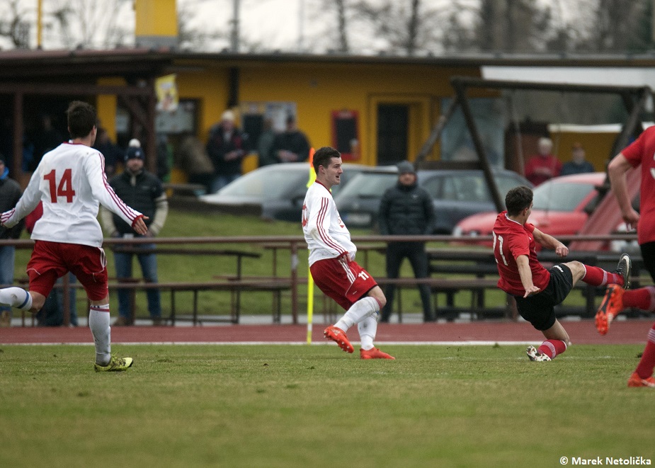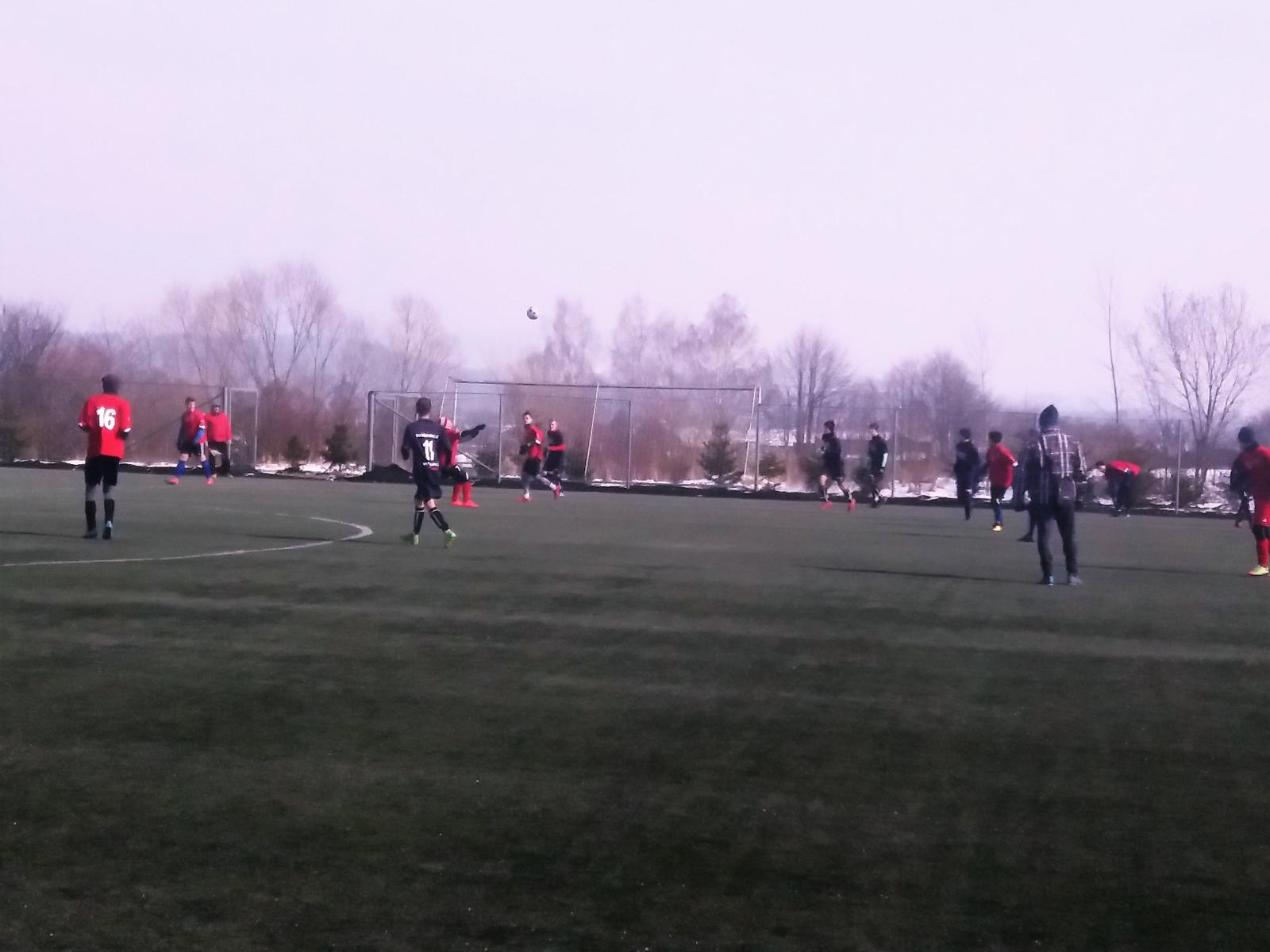 Mrazivá, ale slunečná sobota nabídla na valašskomeziříčské umělé trávě měření sil dvou dorostů. Domácí U17 a hostů z nedalekých Kateřinic. Původním soupeřem domácích měl být celek ze Slovenského Krásna nad Kysucou, který hraje třetí nejvyšší Slovenskou soutěž, ale ten skolila chřipková epidemie, takže patří velký dík narychlo domluvenému soupeři z Kateřinic. Hosté od začátku ukázali, že budou velmi houževnatým a odhodlaným soupeřem. Držení míče sice mírně vyznívalo pro domácí, ale první branka utkání byla v režii hostí. Po faulu byl před šestnáctkou domácích nařízen přímý volný kop a ten ukázkově zužitkoval hráč Kateřinic. Hegar neměl moc šancí tento míč chytit. V hostujícím celku bylo několik velice šikovných fotbalistů, kteří už zažili svůj debut v 1. A třídě v mužské kategorii. Proto bylo i v průběhu hry znát, že tato zkušenost je bude zvýhodňovat především v soubojích jeden na jednoho, kde byli opravdu velmi kvalitní. Vyrovnání přišlo o deset minut později z kopačky domácího kapitána Pobořila, který se dostal k odraženému míči na hranici pokutového území. Prvním dotekem zpracoval a druhým, aniž by se míč dotkl země, přesně zacílil na vzdálenější tyč hostující branky. Další změnu skóre zařídili opět hosté. Nekompromisně potrestali chybu domácí zálohy před hranicí šestnáctky a v zakončení se nemýlili. Na vyrovnání se čekalo dalších dvanáct minut. Domácí stoper Handl se vydal z obrany na výlet na polovinu soupeře a vybídl svojí přihrávkou Kristýna. Ten srovnal stav utkání a zanedlouho poslal ValMez dokonce do vedení. Této brance předcházel samostatný únik Vrabce od poloviny hřiště, který však v koncovce neměl chladnou hlavu a nesmyslně mířil doprostřed hostující brány, kde našel jen připraveného brankáře. V poslední minutě prvního poločasu zařídil Kristýn navýšení o dvě branky, když po úniku na levé straně našel svou přihrávkou Melichaříka.