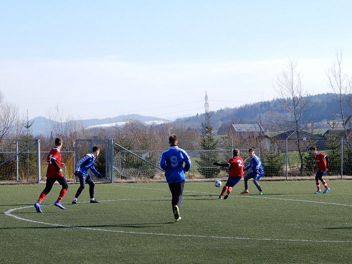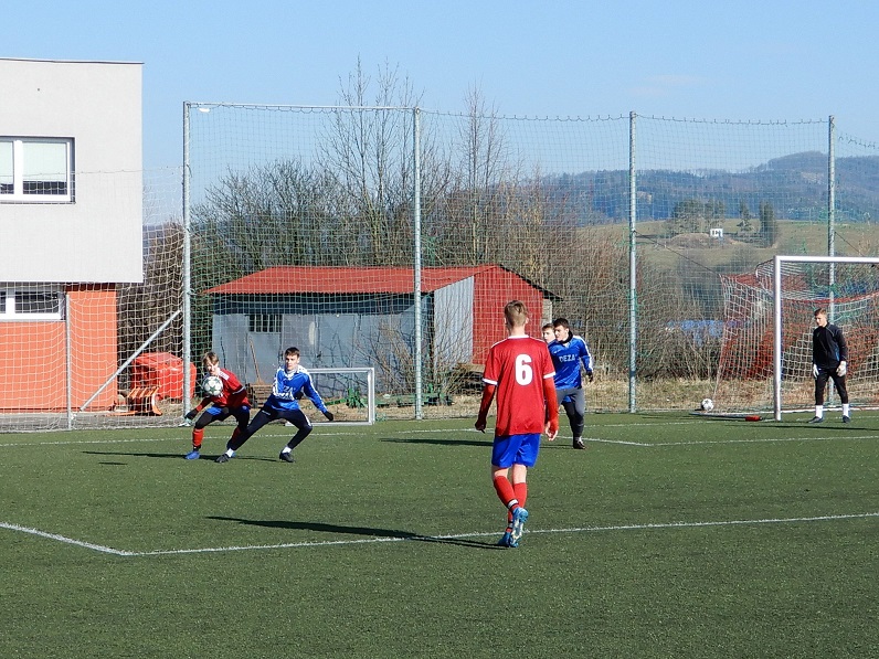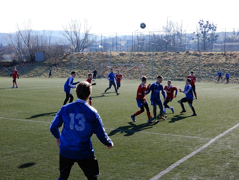 Souboj valašskomeziříčského dorostu. Starší z obou týmů bohužel tento zápas hrubě podcenil a všechny přítomné trenéry, mírně řečeno, naštval. Osobní příprava u některých na tento duel asi nebyla ideální, a to se proti mladším klubovým kolegům hrubě nevyplatilo. Hráči U17 se na tento zápas zdravě nahecovali, splnili většinu pokynů z šatny a jejich osobní přístup bych odhadl na 120%. Obrana se Staňou Večeřou v zádech až na pár výtek odvedla vynikající práci. Na krajích Tadeáš Horák a Pepa Sušeň svůj prostor udrželi a když ne, tak zajištění stopery bylo ukázkové. Kryštof Vičík i Martin Kundrát předvedli perfektní výkon. Mladší dorost v tomto zápase ale inkasoval jako první. Už ve čtvrté minutě se hlavou trefil Míša Woloczij a devatenáctka šla do vedení. Možná i fakt, že by to mohlo jít samo a zadarmo ji ještě víc ukolébal. O vyrovnání se po přímém volném kopu Kryštofa Vičíka postaral Petr Plandor, který byl na konci celé akce. Starší dorost znovu do vedení nešel, protože i tyče Večeřovi branky byly proti. Do vedení šla sedmnáctka po napadení rozehrávky a v tomto začínáme být opravdu dobří. Renda Veselý se v zakončení nemýlil a poločas jsme překvapivě vyhráli.