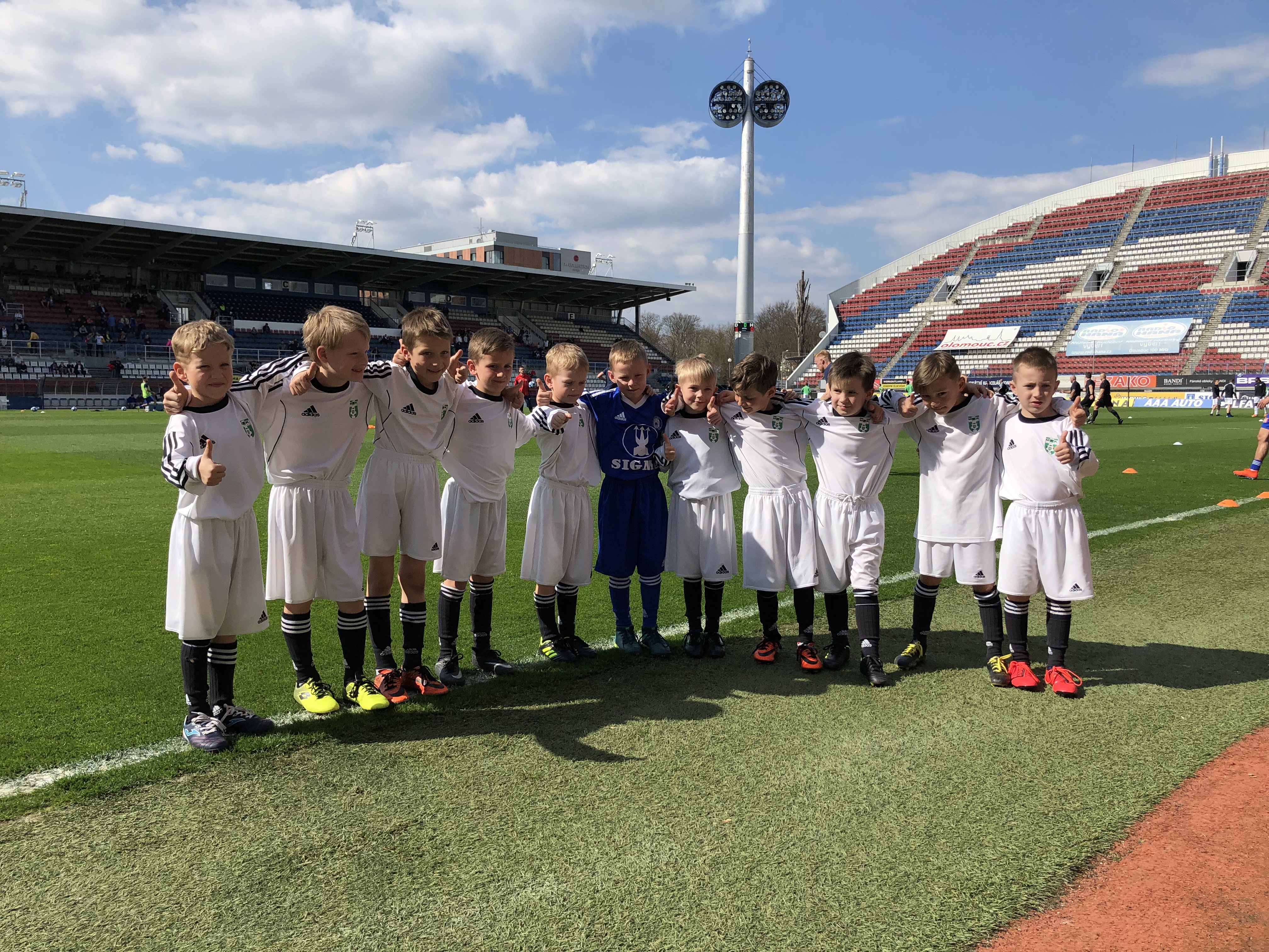 Okolo 10 hodiny dopolední děti již pobíhaly na atrakcích v zoologické zahradě a dle jejich úsměvu na tvářích bylo zjevné, že nápad Jaroslava Goláně byla trefa do černého! Ve 14:00 přejel tým na očekávaný zápas. Před branami Androva stadionu nás čekali trenéři Sigmy Olomouc, kteří byli velice ochotní a kromě samotného nástupu s hráči bylo umožněno našim nejmenším obejít cely stadión a shlédnout před zápasovou rozcvičku z hrací plochy. Podařilo se i oslovit trenéra Karviné pana Straku, který povzbudil naše fotbalové naděje se slovy "